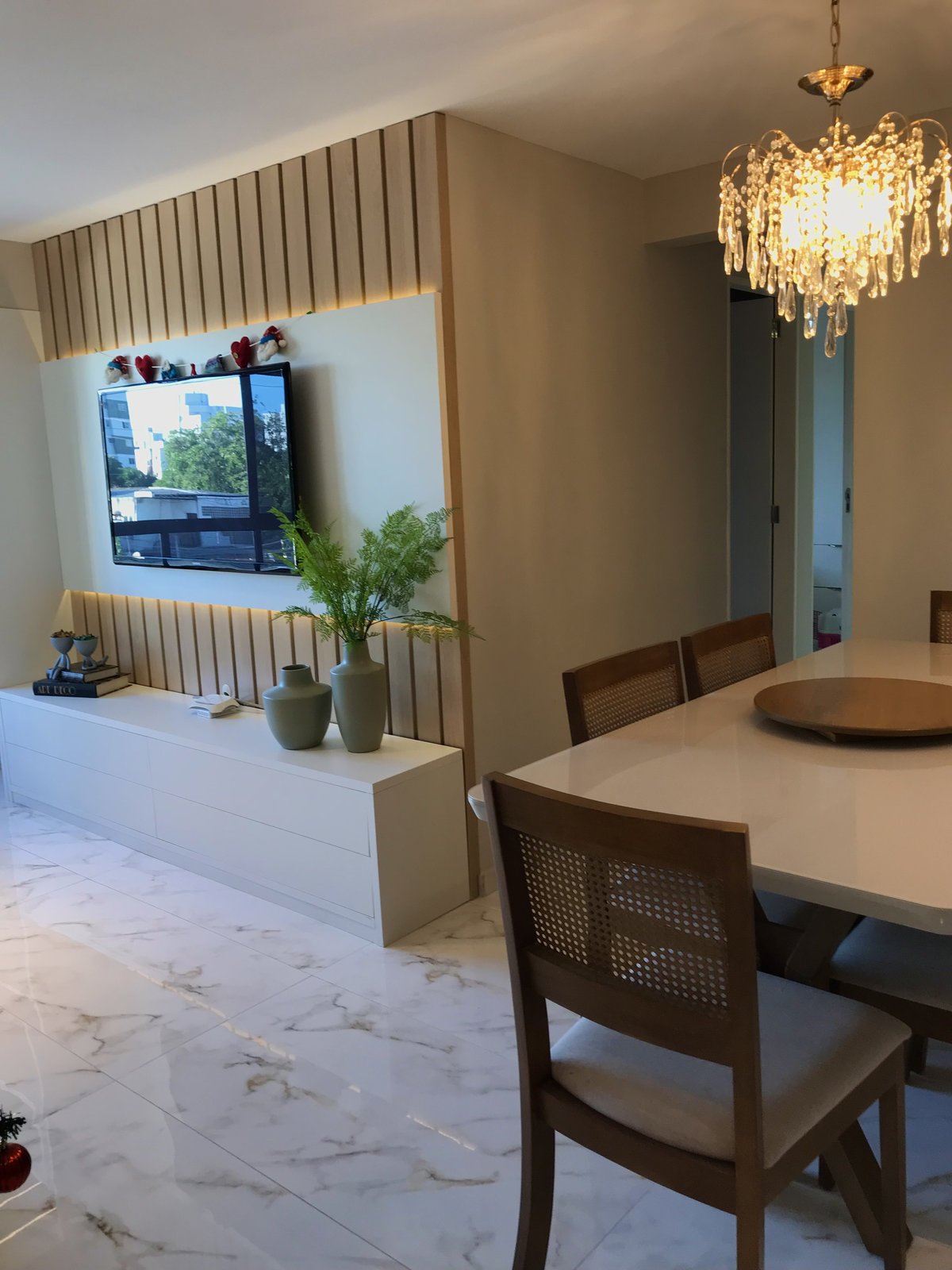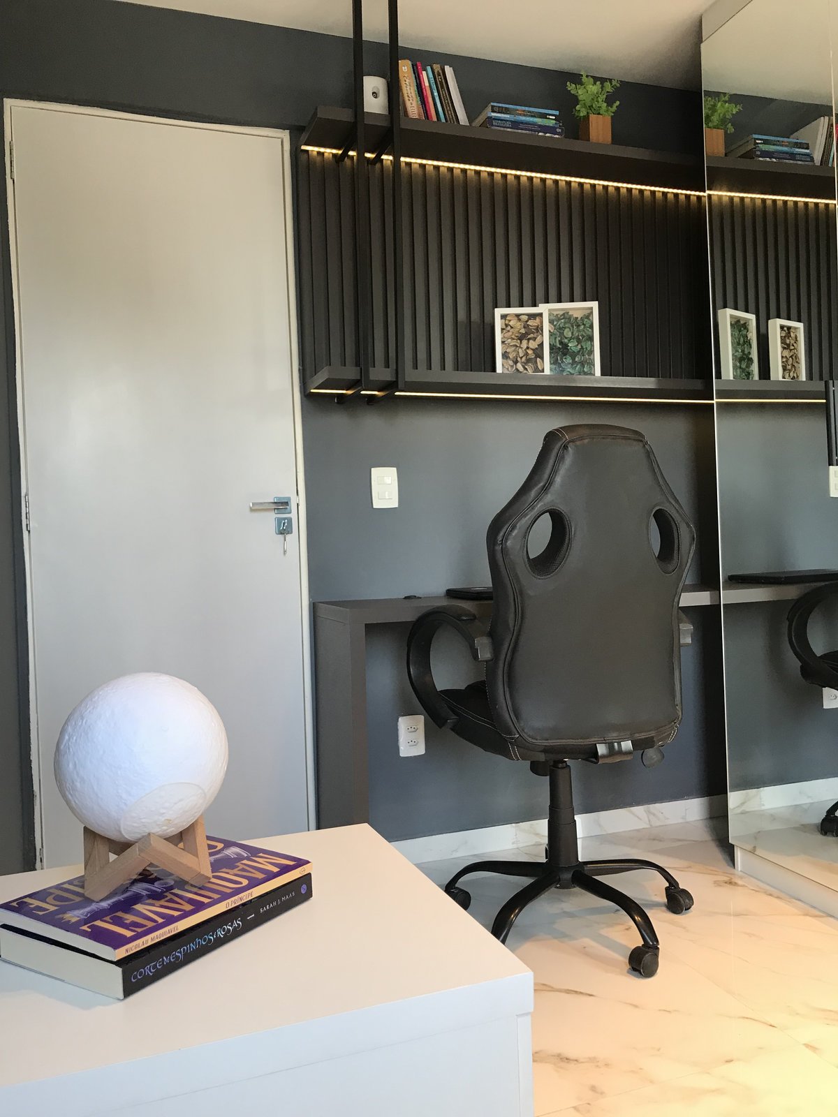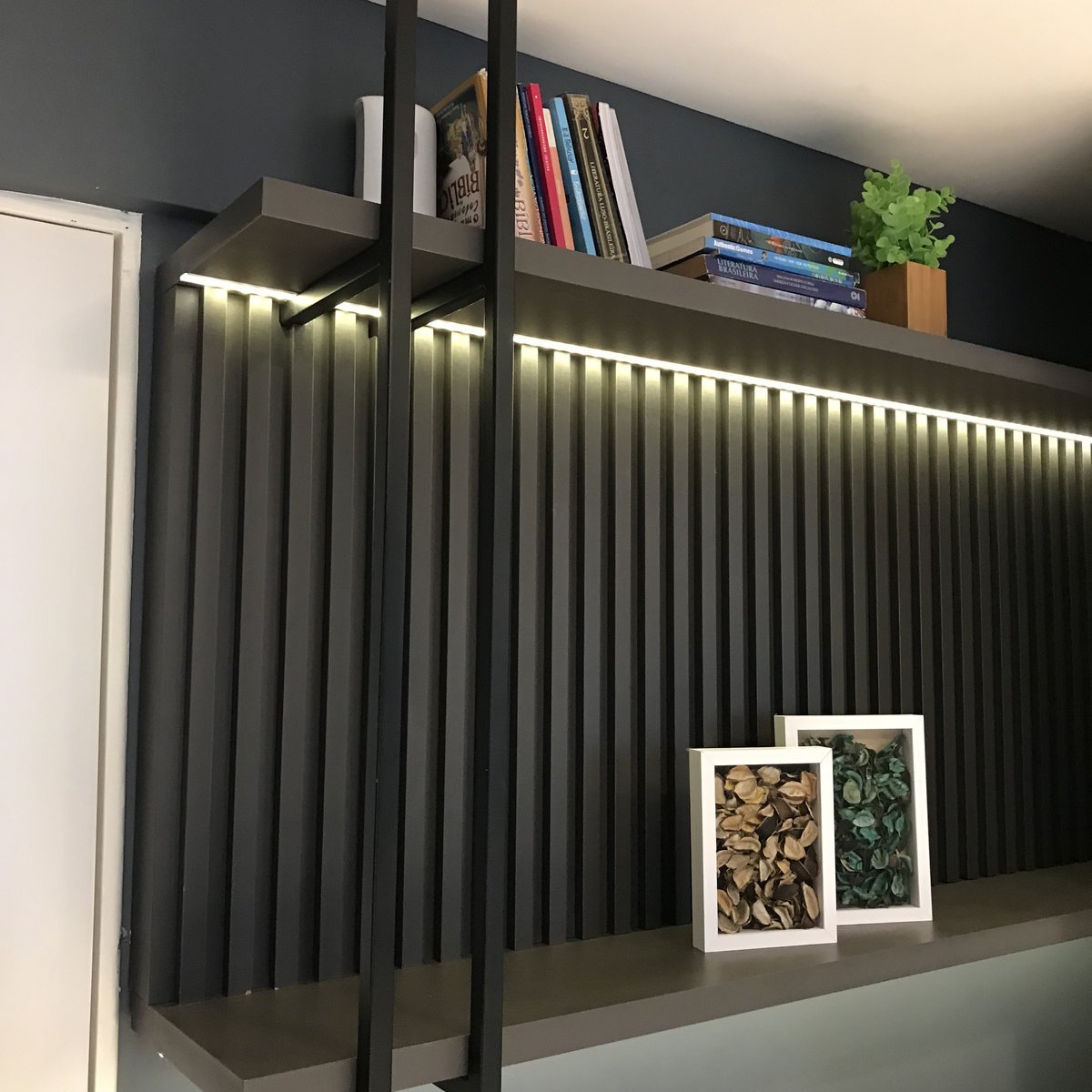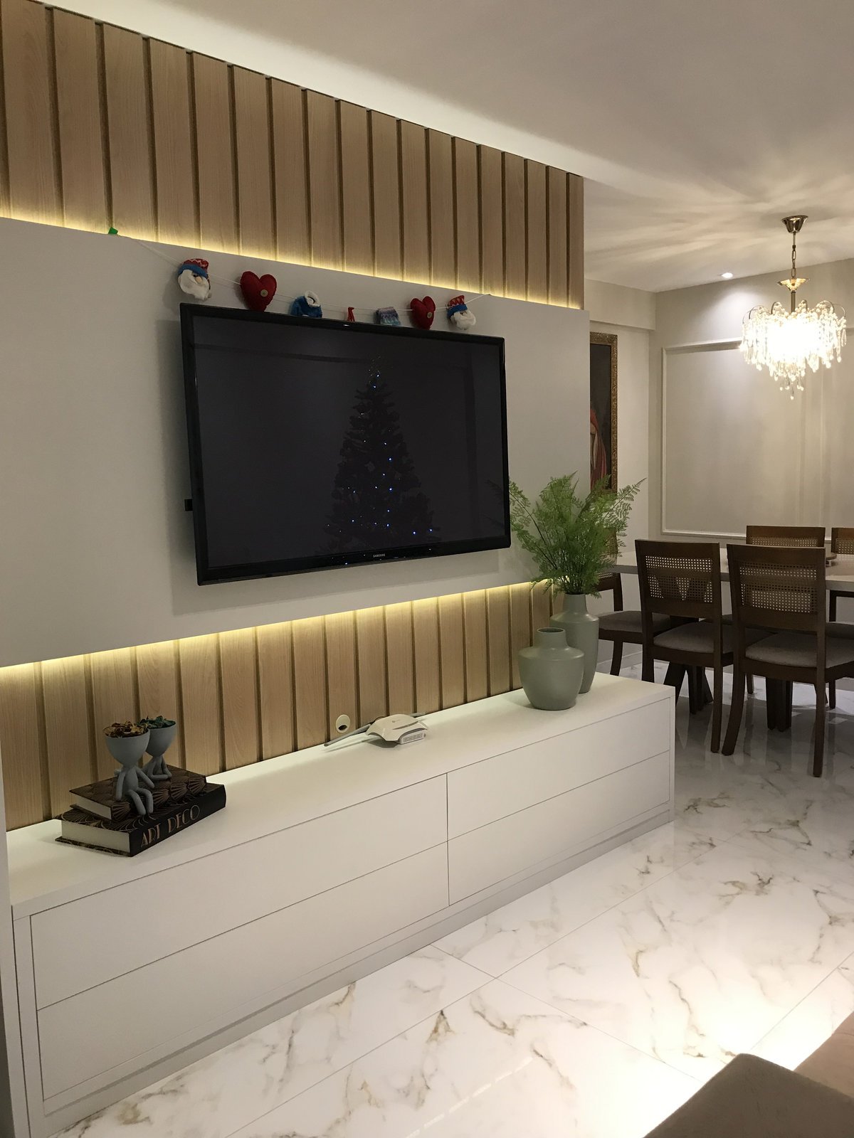 Um refúgio urbano elegante e funcional. Painel ripado com LED, marcenaria sob medida e tons neutros criam um living sofisticado e acolhedor. O jardim vertical traz frescor e conexão com a natureza, enquanto os detalhes dourados e o forro iluminado completam o ambiente com charme e modernidade.